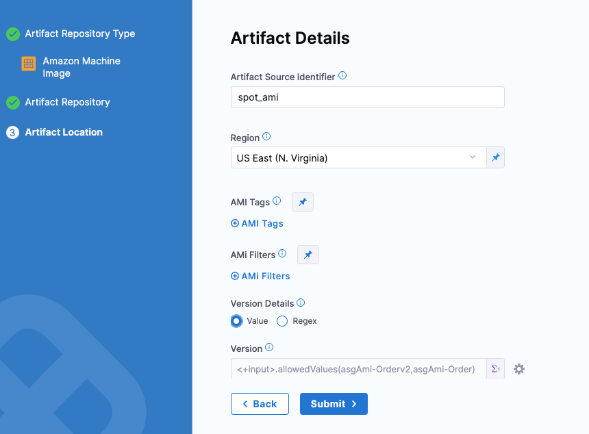 - Spot Elastigroup deployments support AMI artifacts only.