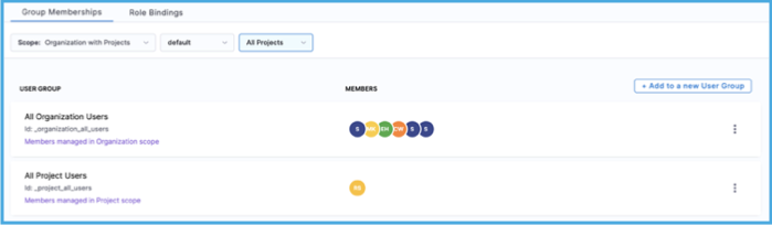 - Organization and Projects: List groups in the scope of a specific organization and all projects under that organization.